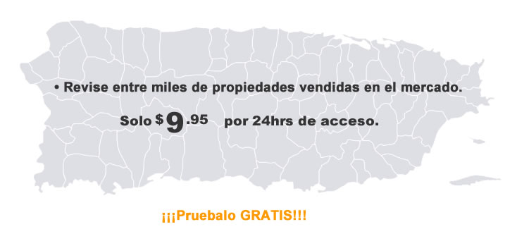 Busqueda de comparables en todo Puerto Rico.![]() Tasamax 24 horas es un sistema de comparables de propiedades vendidas en Puerto Rico. Le permite buscar casas, apartamentos, terrenos y proyectos nuevos vendidos en Puerto Rico por $9.95 por un período de 24 horas. Acceso a data de comparables para comprar o vender una propiedad es sumamente importante, le recomendamos que usen TasaMax para buscar sus ventas comparables en Puerto Rico. |